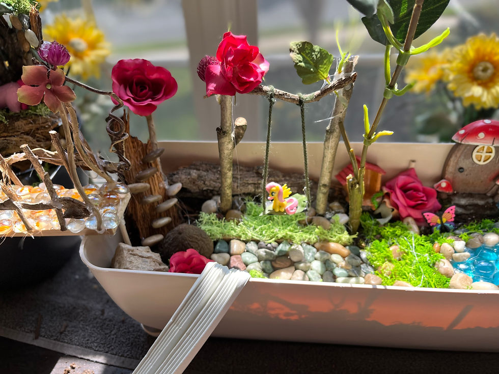 I have previously made multiple fairy gardens in the classroom with the students, and they were always such a hit! So this past summer I made a fairy garden with my niece for her playroom!